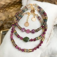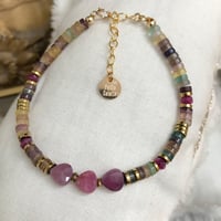 Bracelet avec Perles en corindon (rubis Indien) de très belle qualité, fluorine et Jade verte.